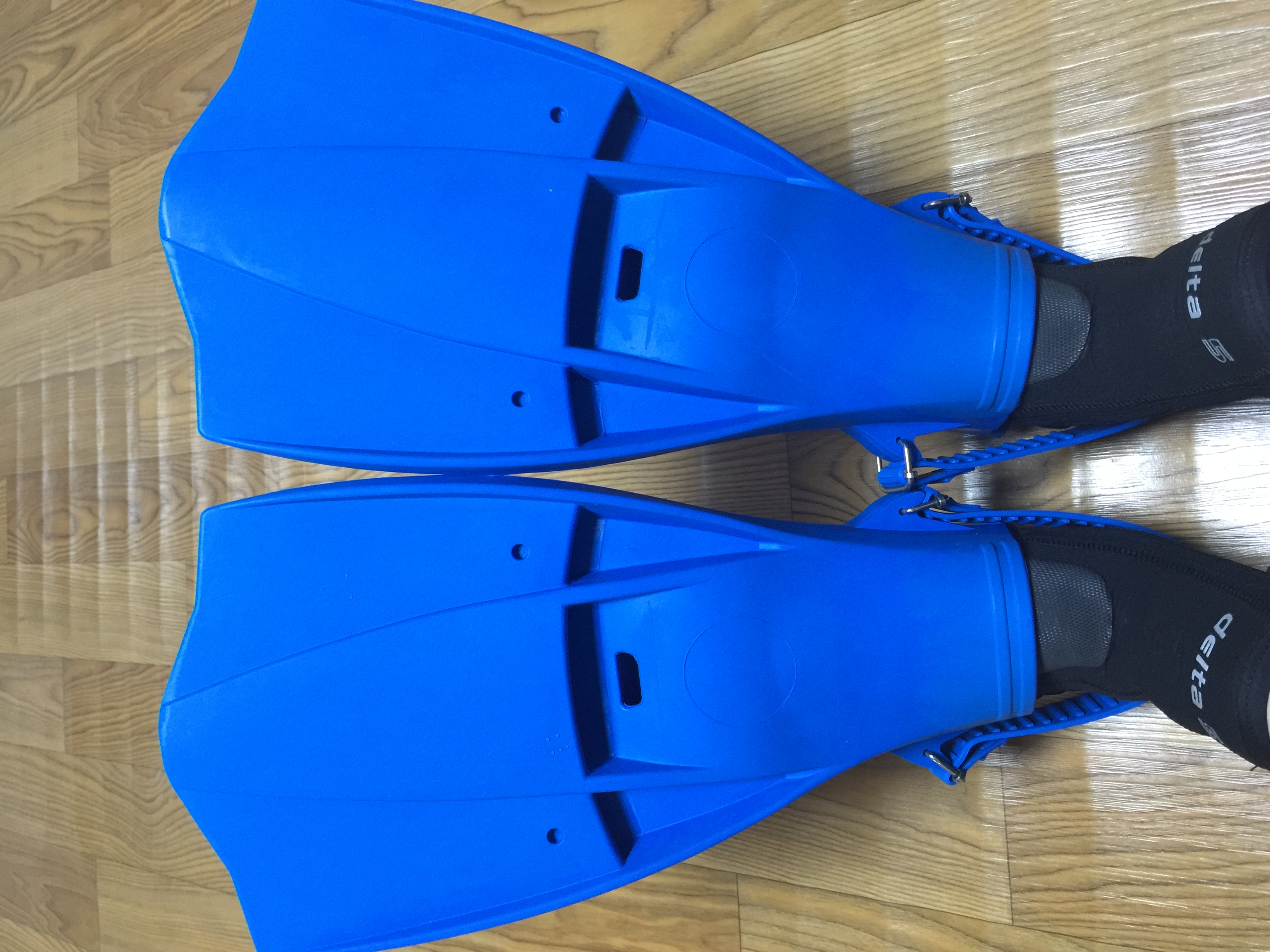 파랑색 M 사이즈 구매했습니다. 검정색이나 흰색은 너무 흔할 듯 하여 과감히 파랑색으로 구매. (발 사이즈는 245mm, 슈즈는 스쿠버프로 델타 롱 5mm XS 사이즈). 스트랩은 아쿠아텍 FS-500 스프링스트랩으로 교체. 고리 부분 쇠가 너무 단단하여 교체하는데 고생했습니다. ㅠㅠ 조만간 실전 테스트를 해 봐야 겠네요. 기대 됩니다. ^^