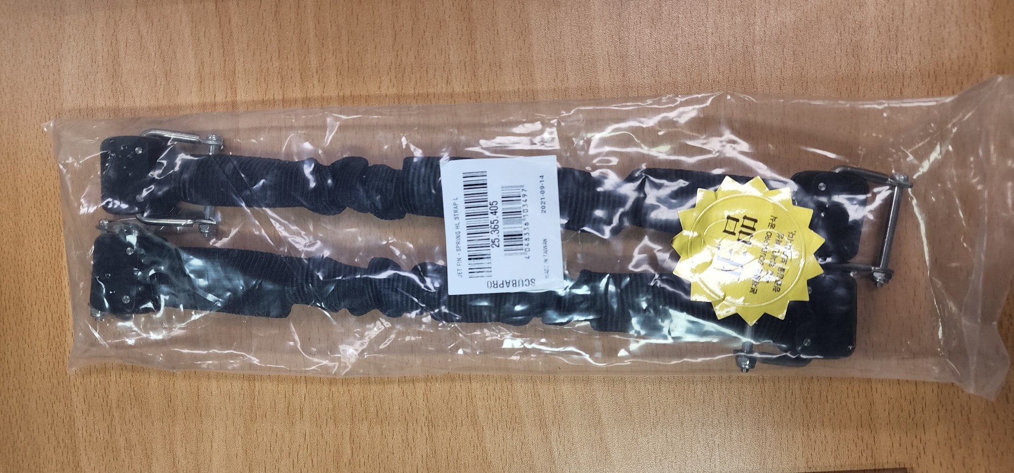 스쿠버프로 카모뉴제트핀 라지사이즈인데 웻입을때는 260미리라 괜찮은데 드라이입을때는 작아서신고벗기가힘들더라구요 그래서 스프링스트랩 분리해서 확인해보니 m사이즈라서 l사이즈로구매하고 손잡이도 별도로구매해서 합체시켯어요~~^^