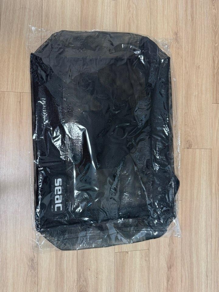사진상으로는 비닐포장에 있는 제품이지만 제가 직접 포장 벗기고 펼처보니 용량이 엄청 큰 망 가방입니다~!다이빙샵에서 제품 찾아가실 때 한세트는 충분히 다 넣어서 가져가실수 있을 거 같습니다!