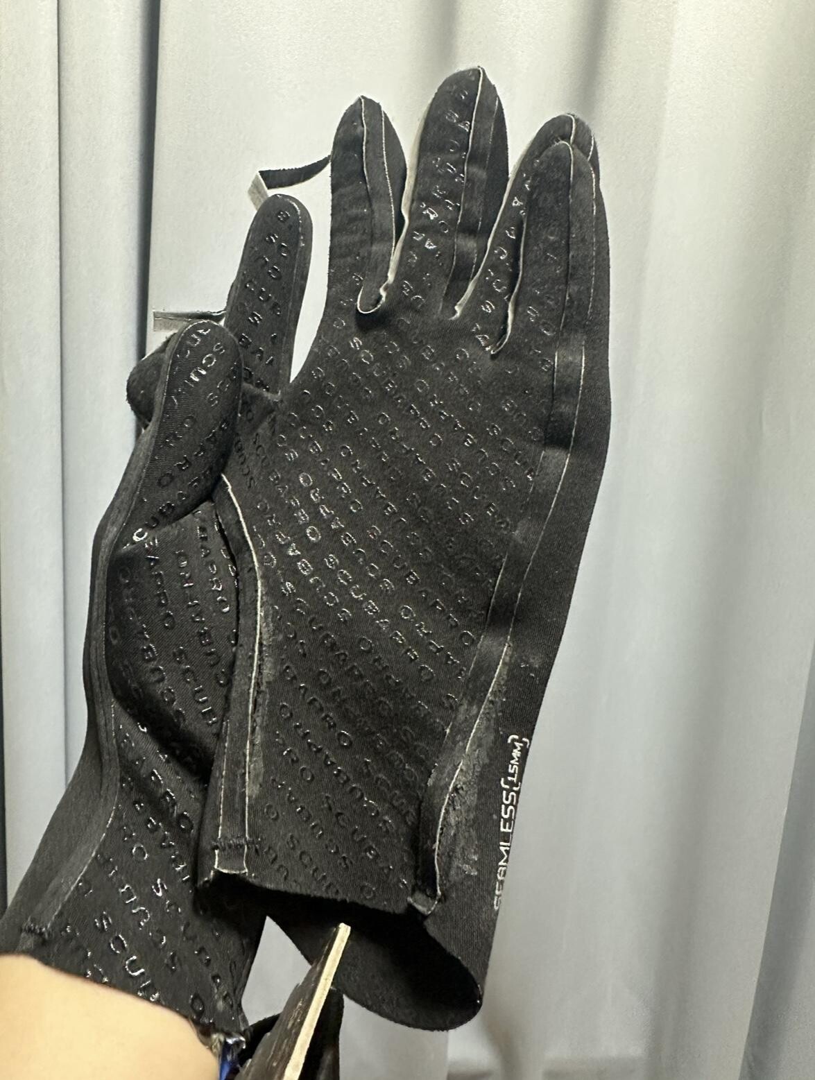 장갑 중에 이만큼 편한 제품이 없어서 이 제품을 사지만, 사진에서 보시듯이 본드로 붙여진 제품이라 내구성이 안좋아요. 매번 다이빙 투어 다녀오면 본드로 덕지덕지 튿어진 곳을 붙여줘야 합니다. 저는 일년 정도 사용했는데, 결국 손목부분 양쪽 다 터지고 띠들도 다 떨어지고 붙일 수 있는 한계를 넘어 다시 주문합니다.
