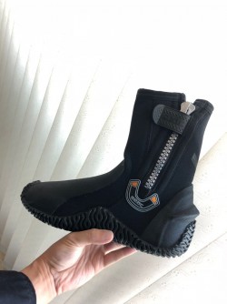 디자인도 좋도 마감도 좋습니다. 큼직한 지퍼는 사용하기 편하고 플라스틱이라 녹슬 걱정 안해도 되고요. 지퍼 잡아주는 찍찍이도 깔끔하고 좋습니다. 필요한 기능은 다 있고 착화감도 좋은 부츠 같습니다. 저는 운동화 사이즈 260, 구두와 슬립온 255, 실제 발 사이즈는 253~5 정도인데 260 사이즈를 사니 길이감은 아주 살짝 여유 있는 정도로 맞고요. 발등 쪽이 핏되지 않고 공간이 좀 남는 느낌인데 어차피 핀을 끼고 스트랩으로 조이면 딱 맞을테니 작아서 발이 아픈 것 보다는 나은 것 같습니다. 국내 다이빙 시 강추드립니다~!