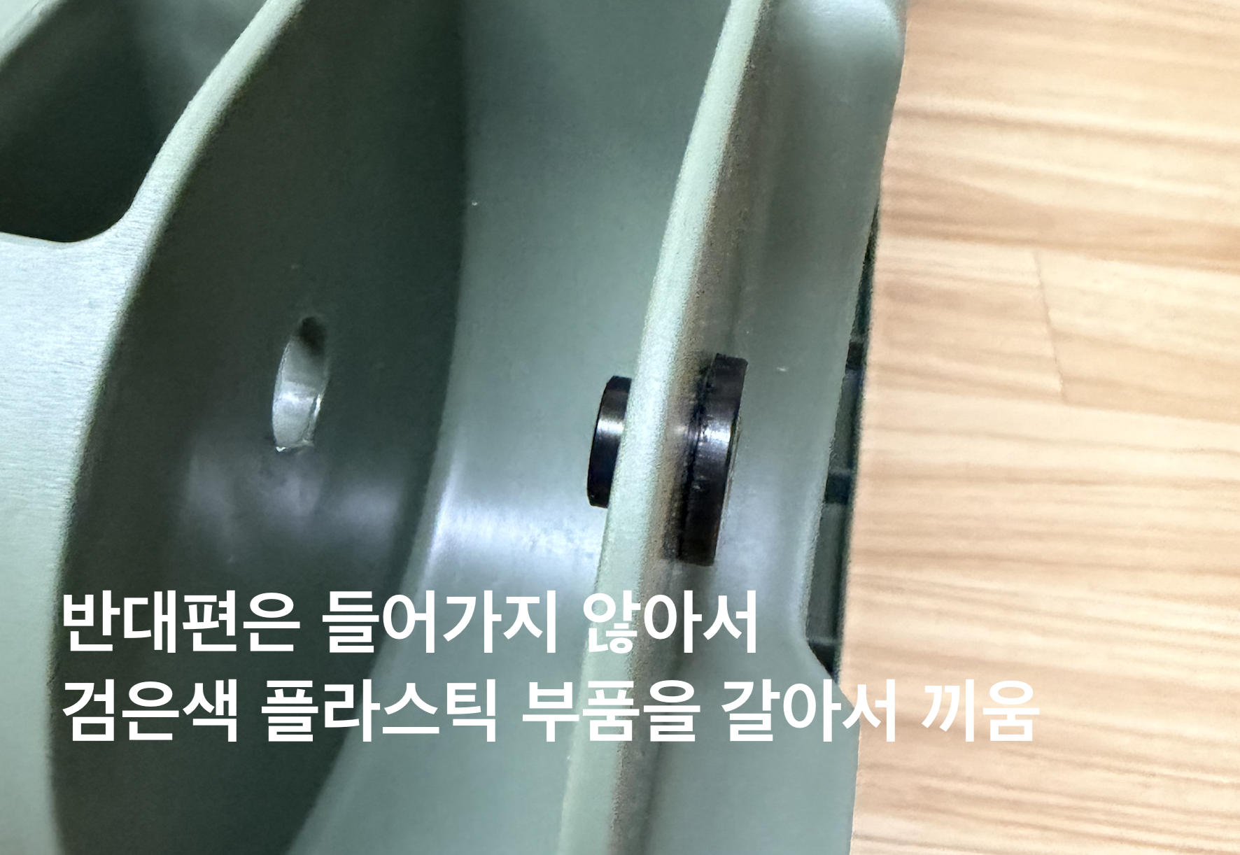 다른 쪽은 구멍 크기와 미세하게 달라서, 갈아 낸뒤에 억지로 끼워 넣었습니다.
