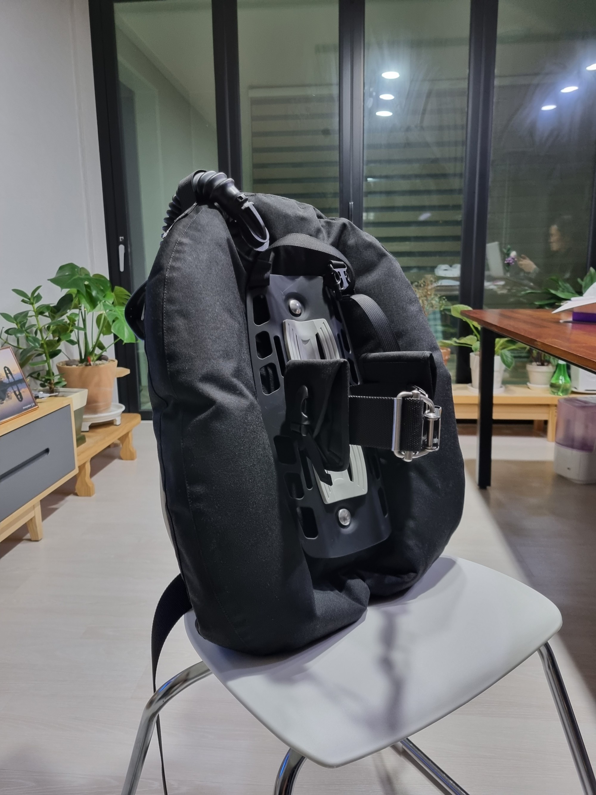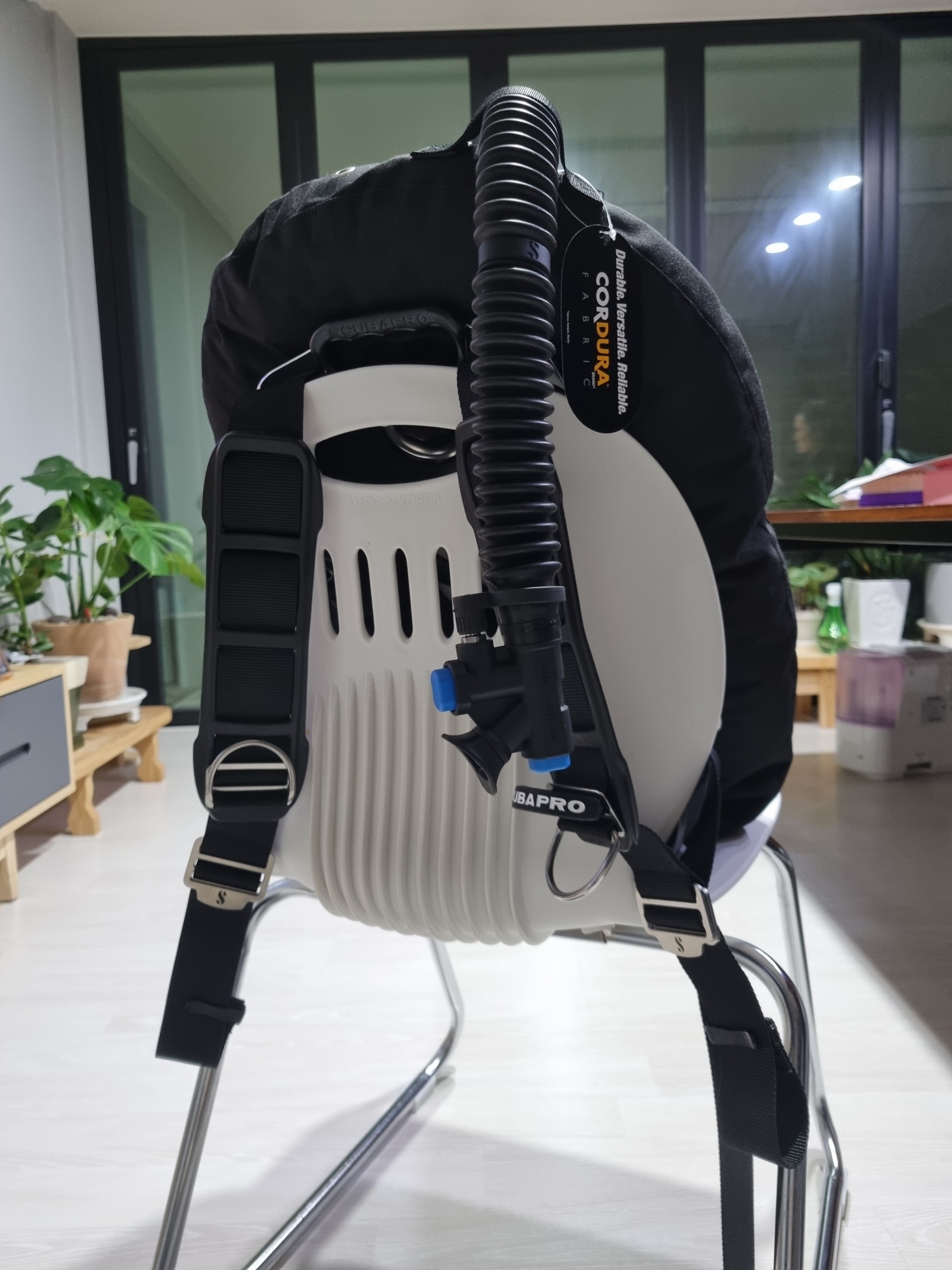 스텐레스백플레이트는 반작반짝 빛나는것이 @@ 멋집니다. 프로 타입이라 웨빙줄이 좌/우로 나눠져있는데 저는 기존 사용하던 방식이라 더 편하구요 ^^ 어깨 와 허리 패드는 슈트와의 밀착을 도와주고 미끌림도 잡아줘서 매우 좋습니다.질감도 부드러워요~^^