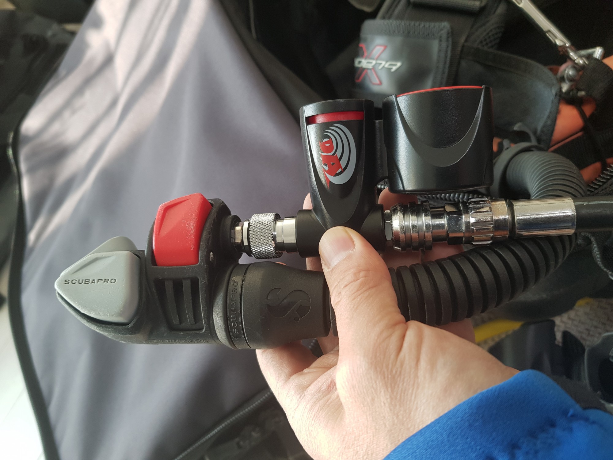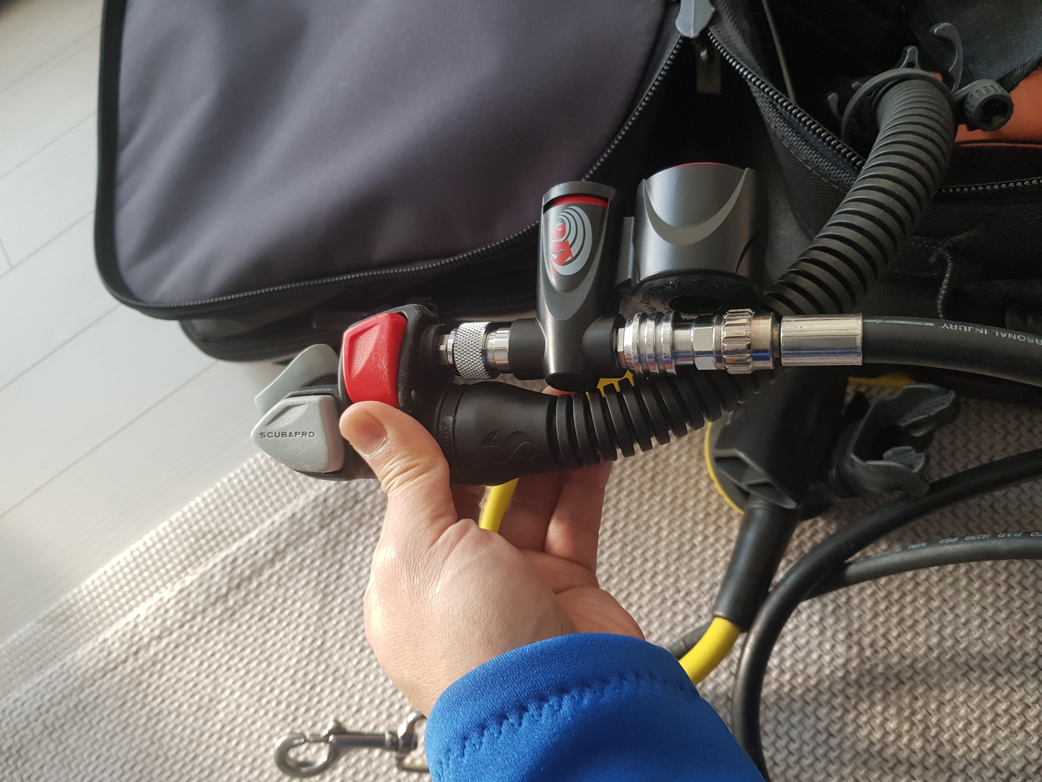 octo 를 사용하지 않고 주 호흡기 2계를 사용하는 지라, 기존 주 호흡기는 목에 걸고, octo 역할로 사용하던 호흡기를 주 호흡기로 사용하면서 필요시 버디에게 주려고 고무 호스 버리고 새 호스 장착해 보았습니다.