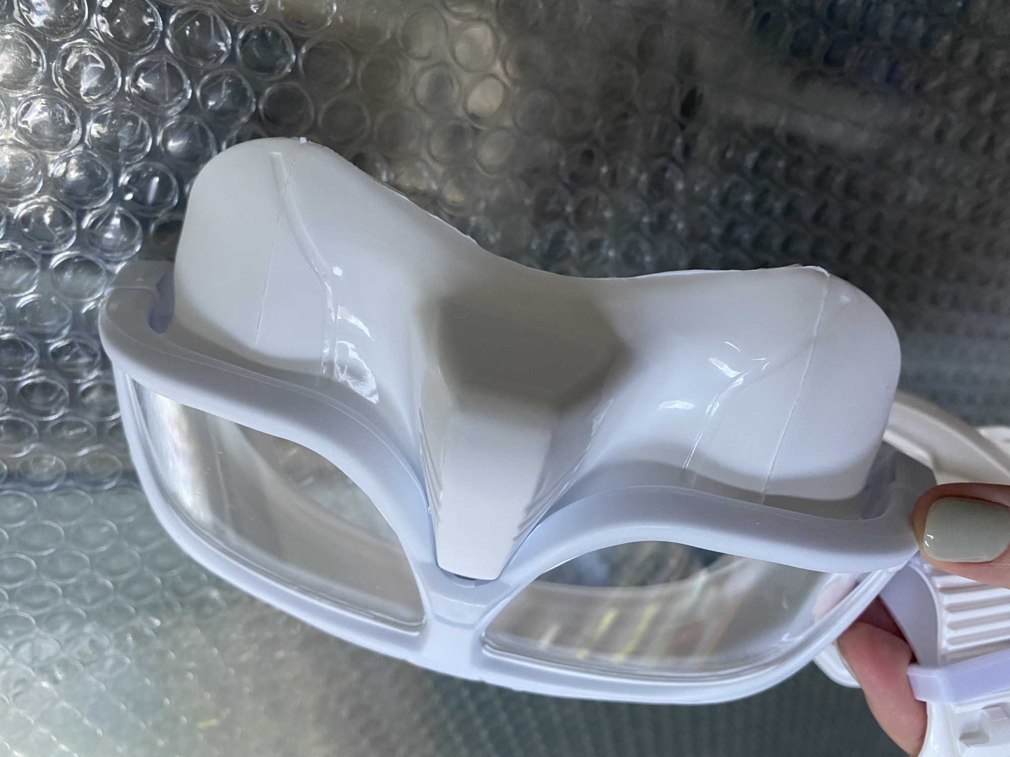 오프라인에서 구매했고 몇일전에 사용해봤는데 코부분에서 물이 들어오네요. 스노클 땔때 특히 많이 들어와서, 제 얼굴에 맞지 않은 마스크 인듯해요, 사실 코밑에 고무 마감이 잘 안되어 있기도 해요! 가성비라서 샀는데 좀 더 마감 잘된거 샀으면 나았을까하네요..!