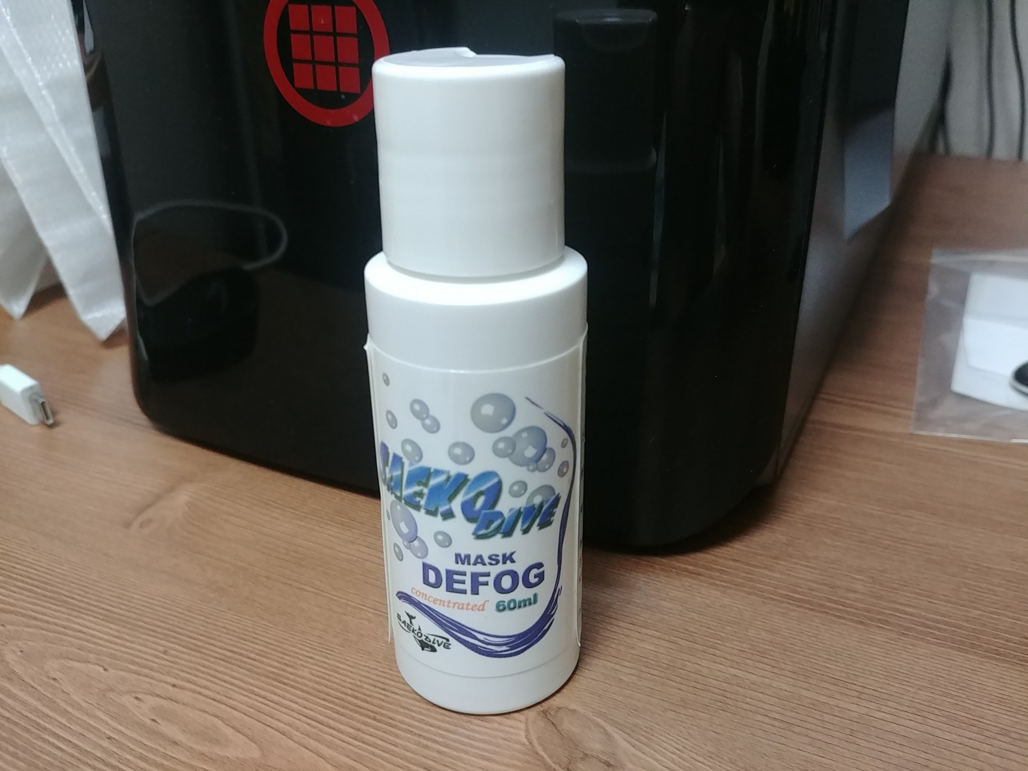 기존에 쓰던 제품은 37ml 였는데, 이 제품은 60ml 라서 좀 더 오래쓸 수 있을 것 같습니다. 대만제 제품이고요, 뚜껑 뒷부분을 누르면 액체가 나오는 구멍이 돌출되는 특이한 구조입니다. 다만, 동봉된 안전관련 안내문을 보면 눈에 들어갔을 때 대량의 물로 씻어내라는 문구가 있는데, 다이빙 마스크에 사용하는 제품치고는 좀 무서운 문구네요.