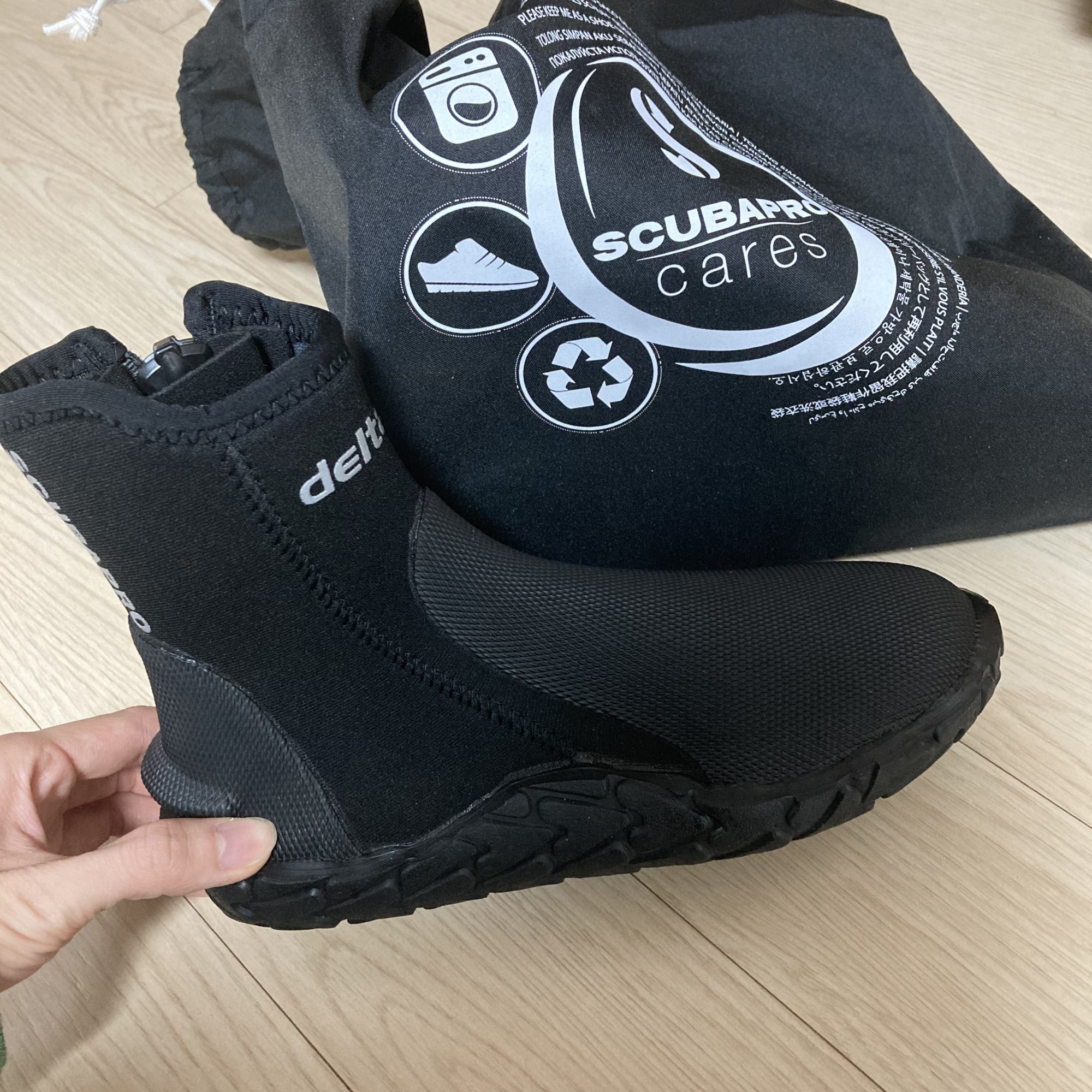 발끝이 살짝 닿긴한데 윗 사이즈는 클것같아서 그냥 신으려구요 ㅎㅎ 딱맞아서 다이빙하기 편할거 같네요