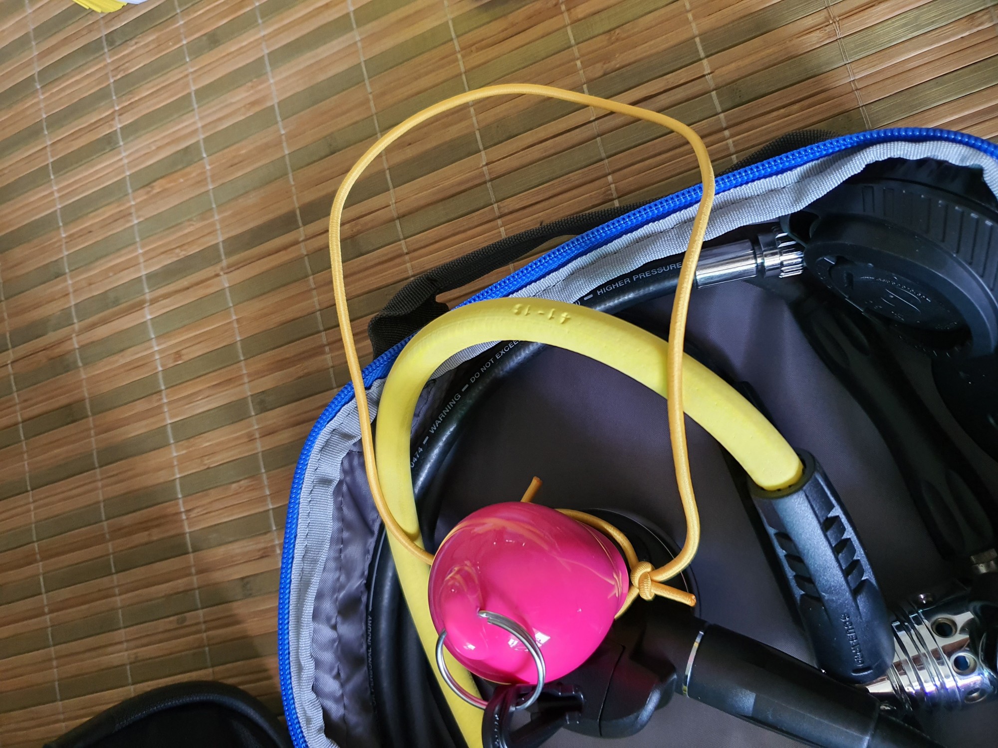 BC 장비에 여러 장비들을 결속하는데 입수시 충돌 우려가 있더라구요. 그래서 고무링을 이용해 다시 한번 더 고정해주니 움직임이 없어서 입수나 출수시 장비가 걸리지 않아서 참 좋습니다.