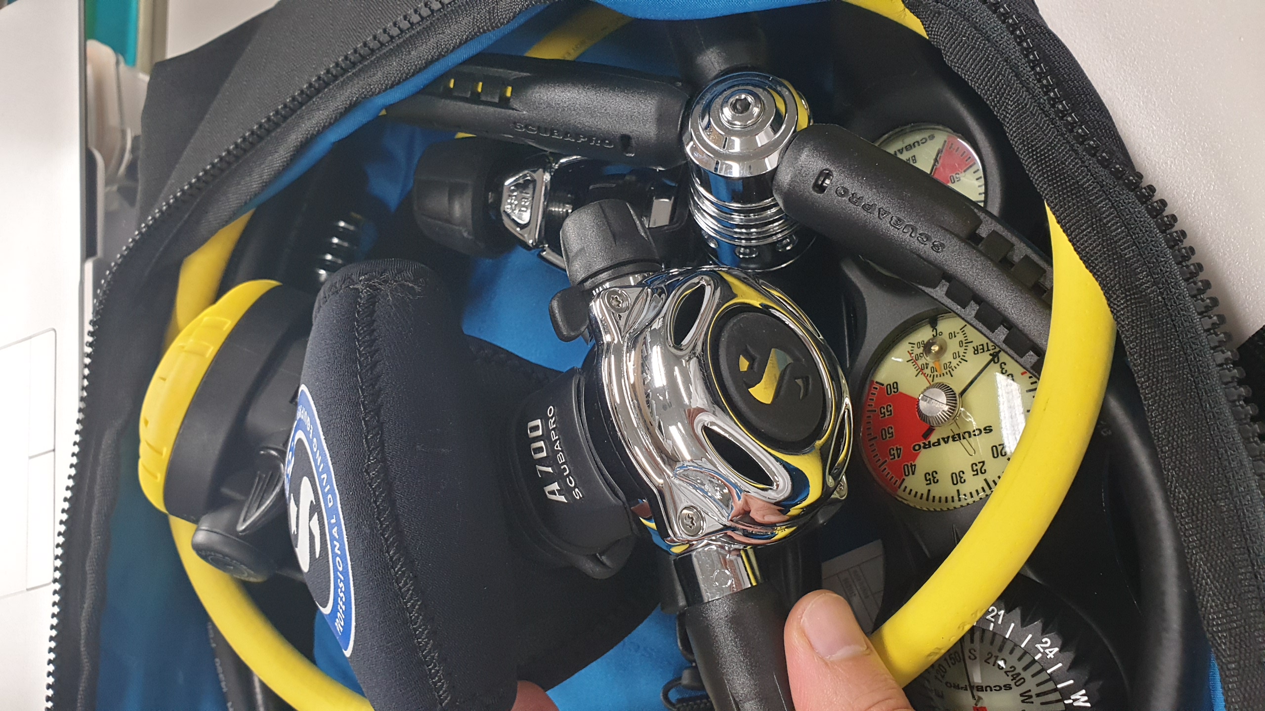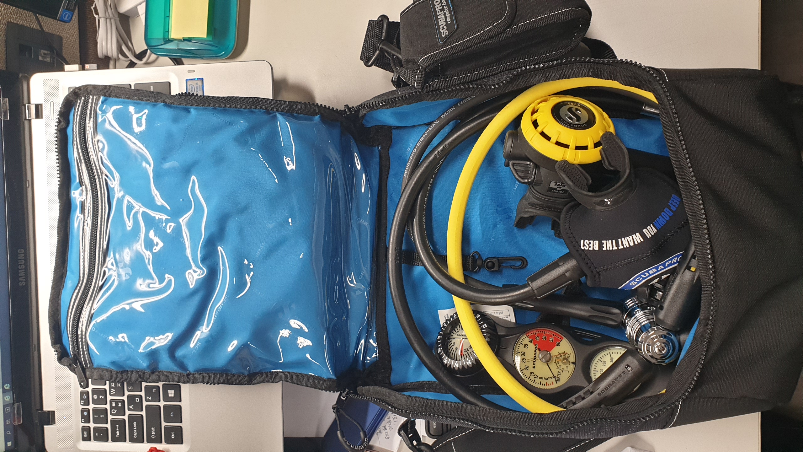 현재 모든 장비를 스쿠버프로 제품을 사용하고 있어서... 호흡기 가방도 같은 제품으로 하고 싶어서 검색했는데... 이 제품이 딱 나오네요... 외형은 많이 보셨을거 같아서.. 안쪽도 사진으로 찍었습니다.. 호흠기를 넣고 찍었는데.. 참고 하시면 될거 같아요.. 크기는 넉넉하고.. 누가 봐도.. 딱~! 호흡기 가방이구나.. 할거 같네요. ^^