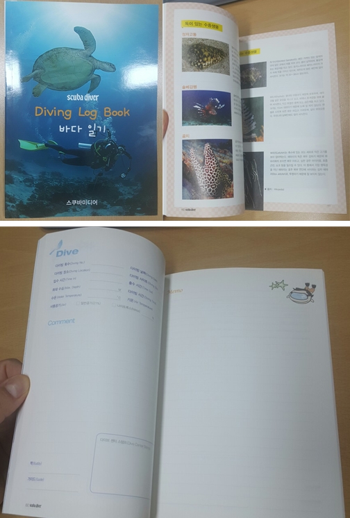 대부분의 로그북이 오픈워터 자격증을 취득하며 단체에서 자격증이 발급될 때 같이 나오는 것을 사용하다보니 항상 약간 아쉬운 점들이 있었는데 이 바다 일기 라는 로그북은 단체와 상관없이 편하게 사용할 수 있고 뒷 쪽에 좋은 정보들도 있어서 너무 맘에 듭니다. 책자 형태라 분실의 위험성도 적고, 소장 가치도 있어서 회원들이 모두 좋아할 것 같습니다. 좋은 제품 만들어 주셔서 감사합니다~~