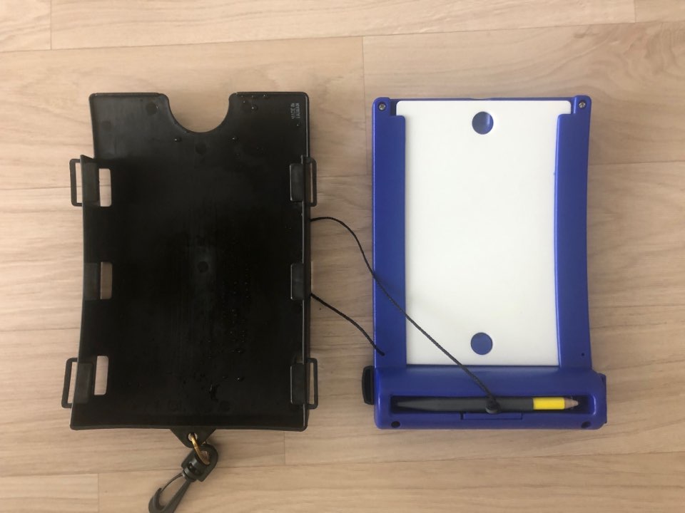 가격이 조금 비싼감이 없지 않아 있지만 교육 시 매우 유용하게 사용하고 있습니다. 첨부 사진 처럼 커버가 있어 슬라이드로 넣었다 뺐다 할 수 있고, 너무 작지도 크지도 않아 활용성이 높습니다. 다만 자석펜이 잘 고정되지 않아 사용하다보면 사진처럼 덜렁거리는 경우가 잦네요, 펜에 테이프를 감아서 사용하던가 해야할 것 같습니다.