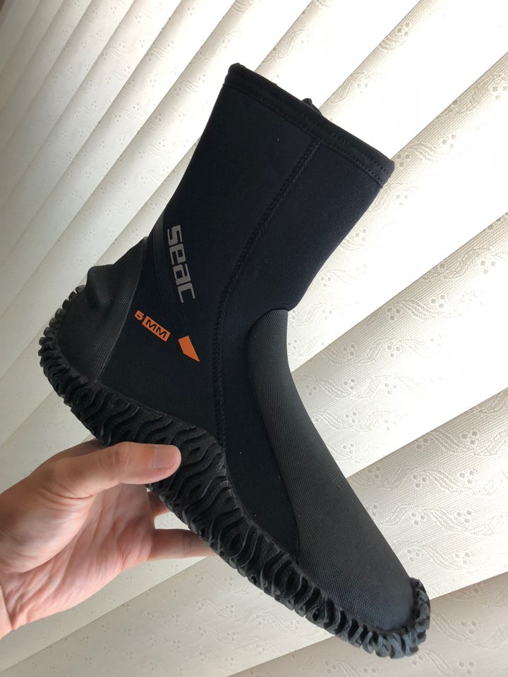 디자인도 좋도 마감도 좋습니다. 큼직한 지퍼는 사용하기 편하고 플라스틱이라 녹슬 걱정 안해도 되고요. 지퍼 잡아주는 찍찍이도 깔끔하고 좋습니다. 필요한 기능은 다 있고 착화감도 좋은 부츠 같습니다. 저는 운동화 사이즈 260, 구두와 슬립온 255, 실제 발 사이즈는 253~5 정도인데 260 사이즈를 사니 길이감은 아주 살짝 여유 있는 정도로 맞고요. 발등 쪽이 핏되지 않고 공간이 좀 남는 느낌인데 어차피 핀을 끼고 스트랩으로 조이면 딱 맞을테니 작아서 발이 아픈 것 보다는 나은 것 같습니다. 국내 다이빙 시 강추드립니다~!