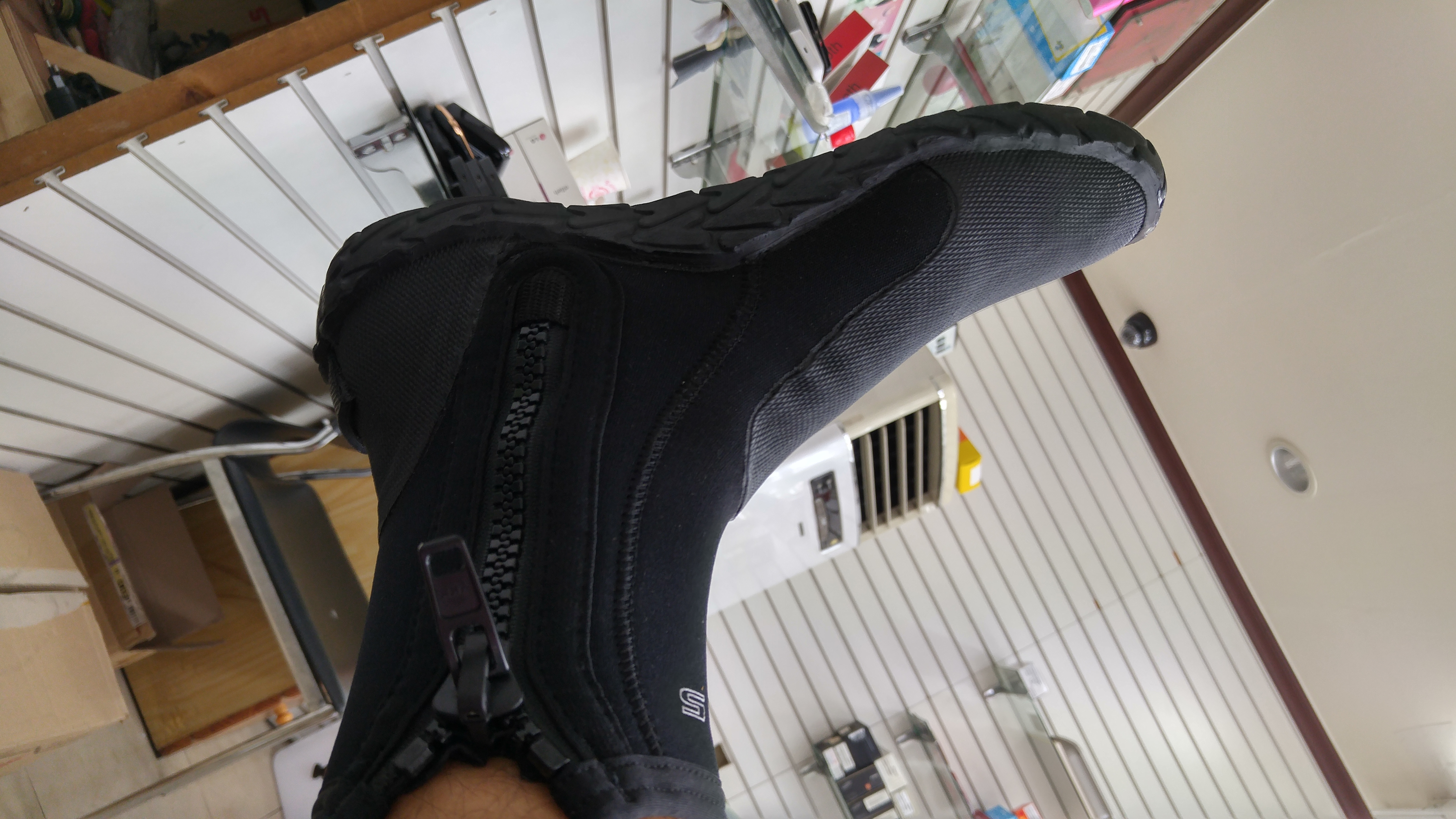 그래서 그냥 신었습니다 그 다음번에는 지퍼가 아예 떨어져 나갔습니다
