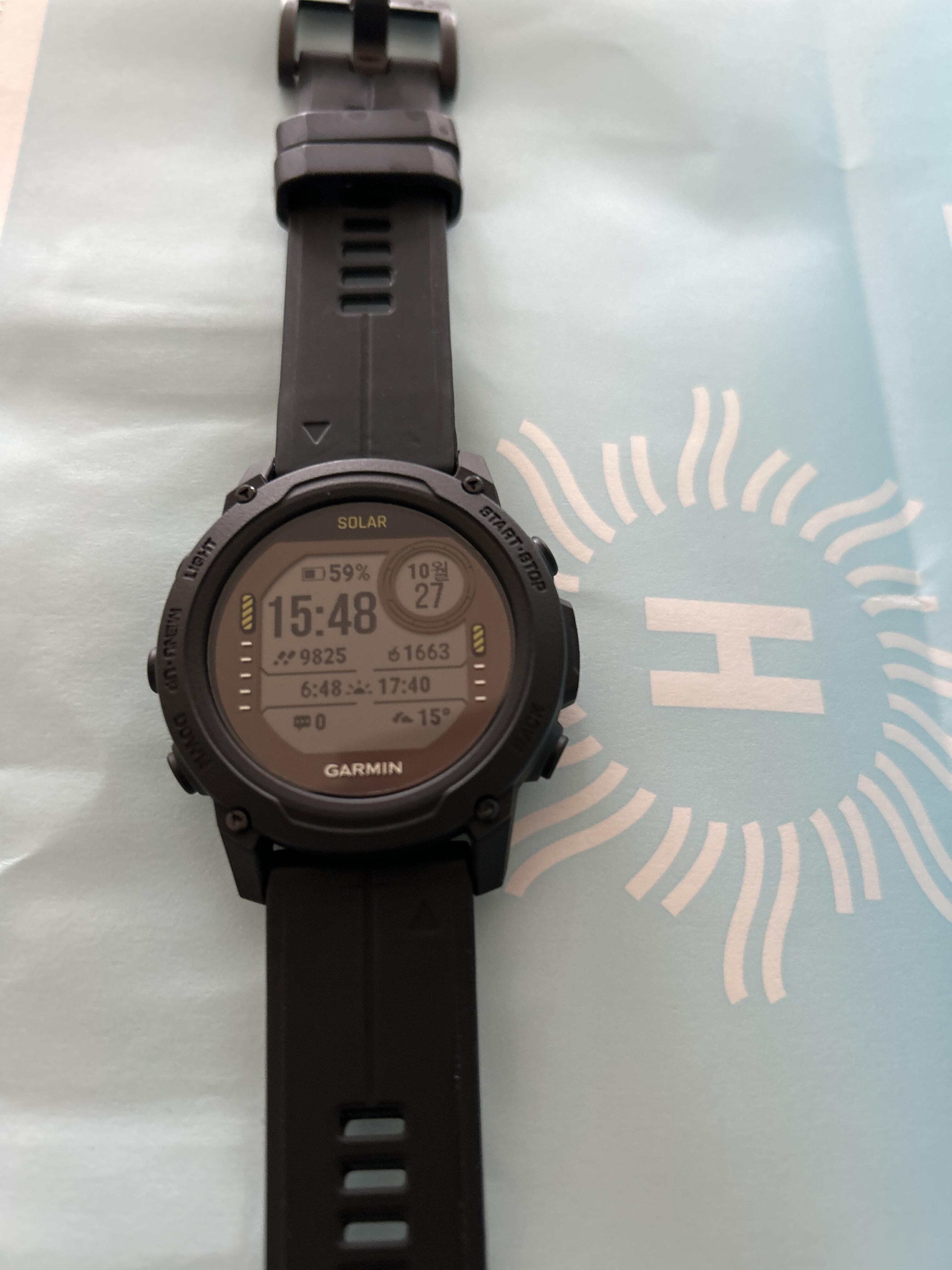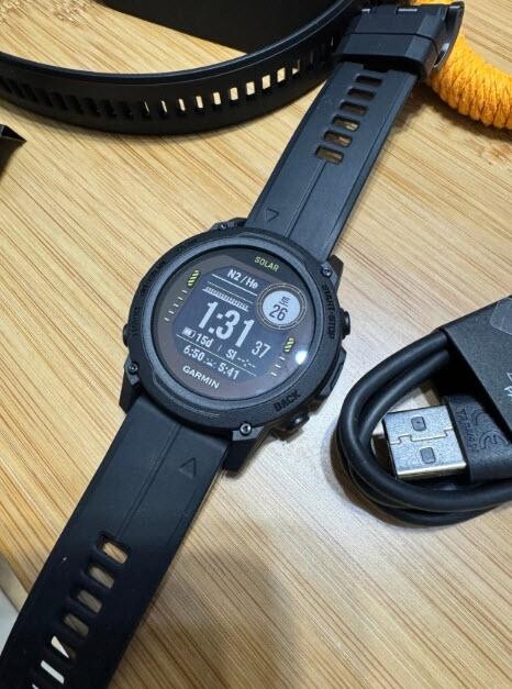 예정보다 빠른 배송으로 잘 도착했네요. 다이빙컴퓨터+스마트워치 기능에 태양광 충전까지 되어서 좋아요.