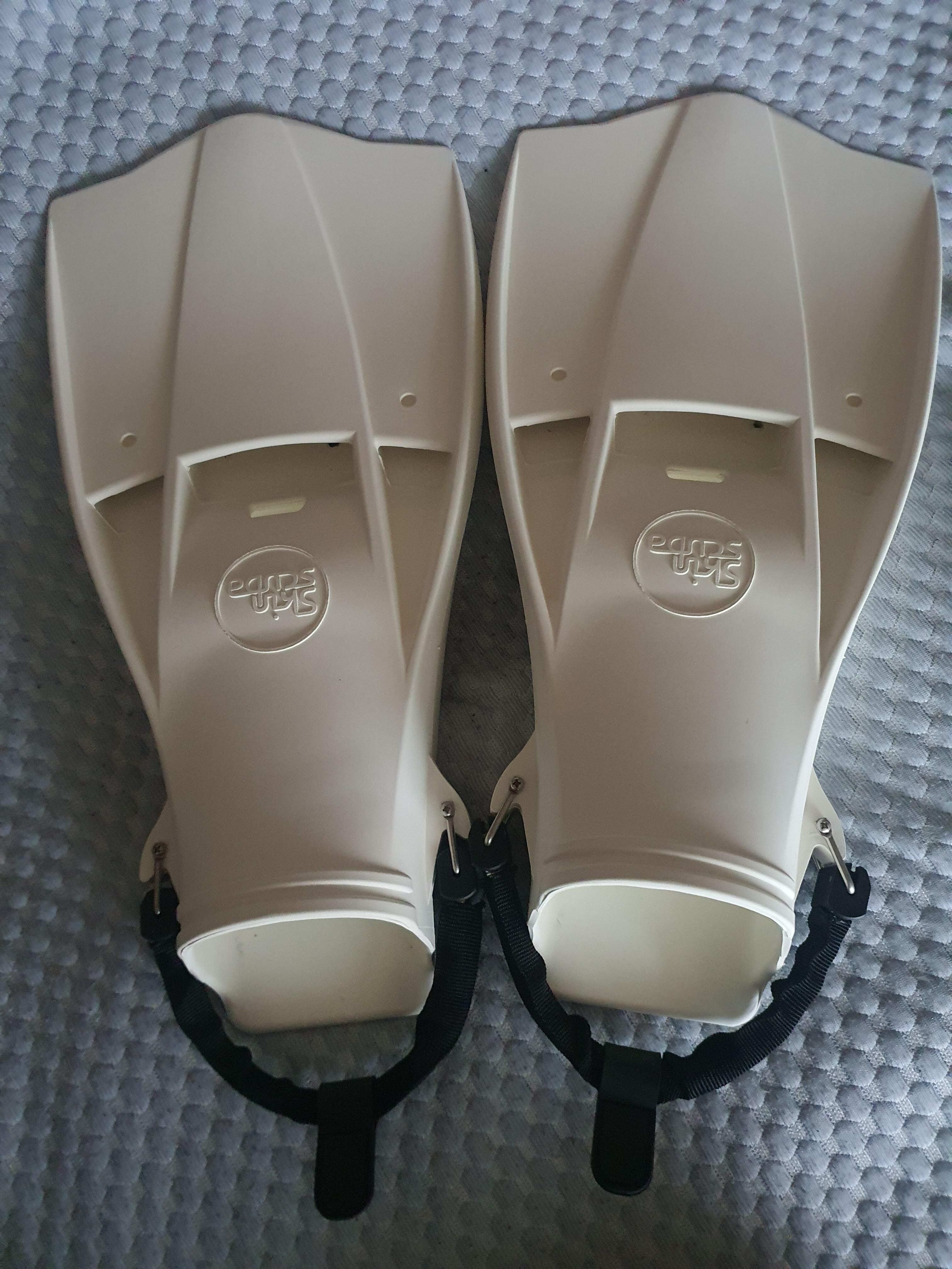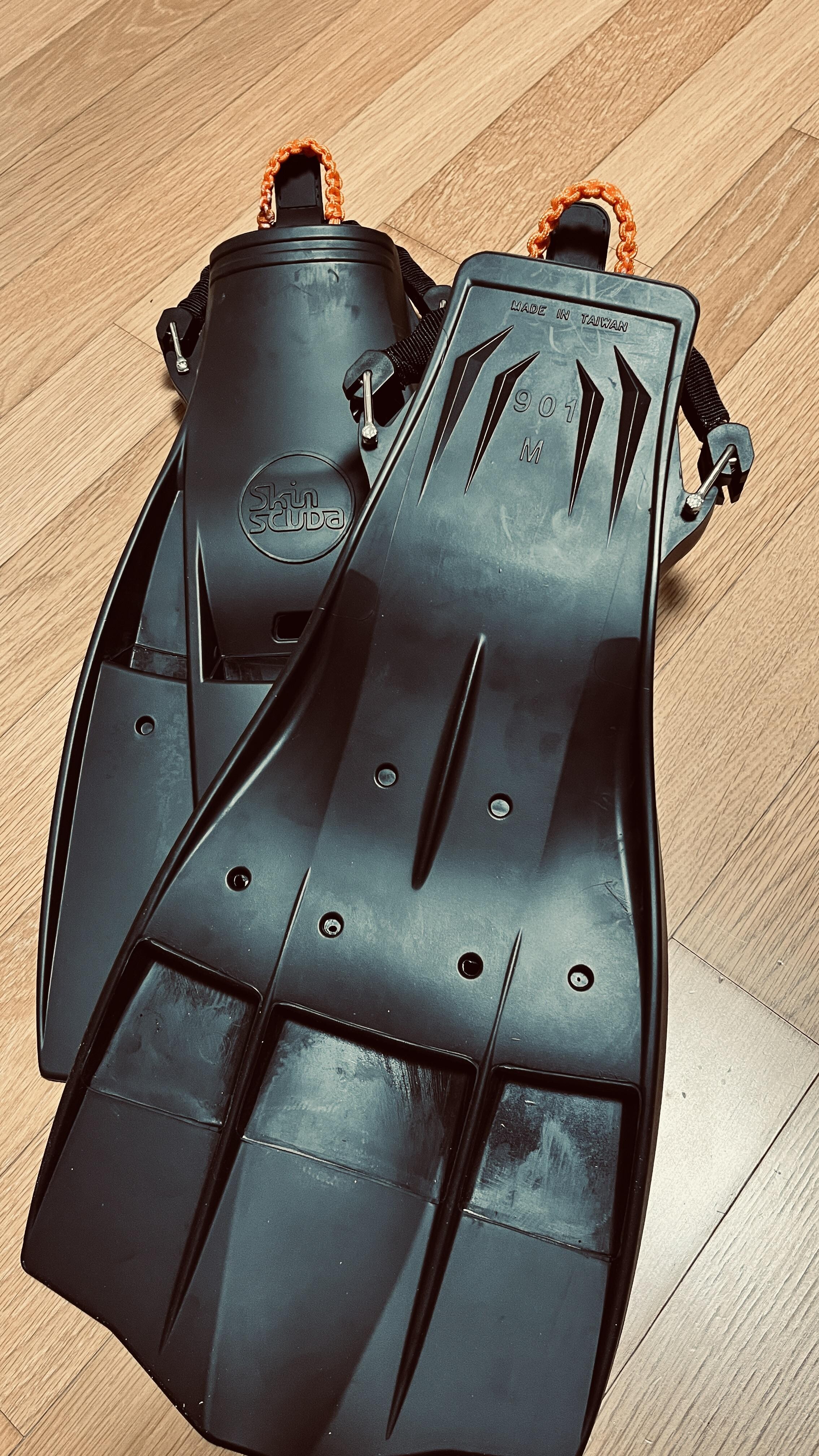 스쿠버프로 제트핀 사용 시에 종아리에 쥐가 나서, 가벼운 다이브라이트 사용하다가 핀이 너무 길어서 경량 제트핀 알아보다가 L 사이즈 구매를 해서 드라이 슈트(부츠 270mm)에 사용을 하고 있었는데, 3mm 네오프렌 부츠에는 L 사이즈가 좀 노는 것 같아 땡처리 할 때 M 사이즈 얼른 질렀습니다. 다행히 M 사이즈는 재고가 있네요 :)