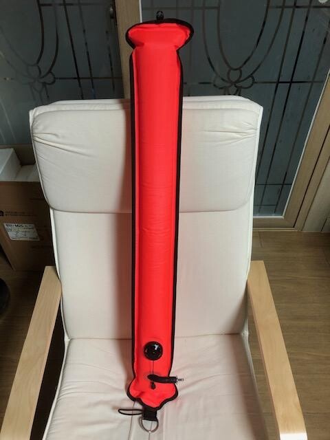 그래서 같은 제조사의 제일 작은 SMB를 구매해봤습니다. 아직 사용전이지만 한 손에 촤악! 감기는 맛이 있네요(폭이 약16cm정도). 폐쇄형이지만 일반 남성의 한숨으로 90~100%정도 채울 수 있을 것 같습니다.길이는 1M남짓해서 파도 칠때나 거리가 있는 곳에서는 잘 안보일 수도 있을 것 같아요. 해외투어에서는 마스터들이 SMB를 쏘아주지만 전 가능한 제 SMB를 많이 쏘는 편입니다. 오랫동안 다이빙할려면 몸이 계속 기억하도록 연습이 필요할 것 같아서요.